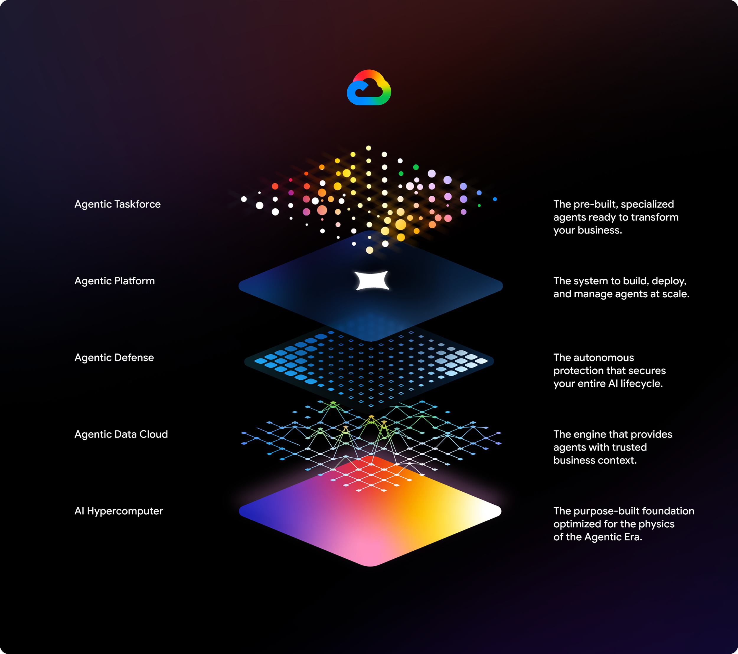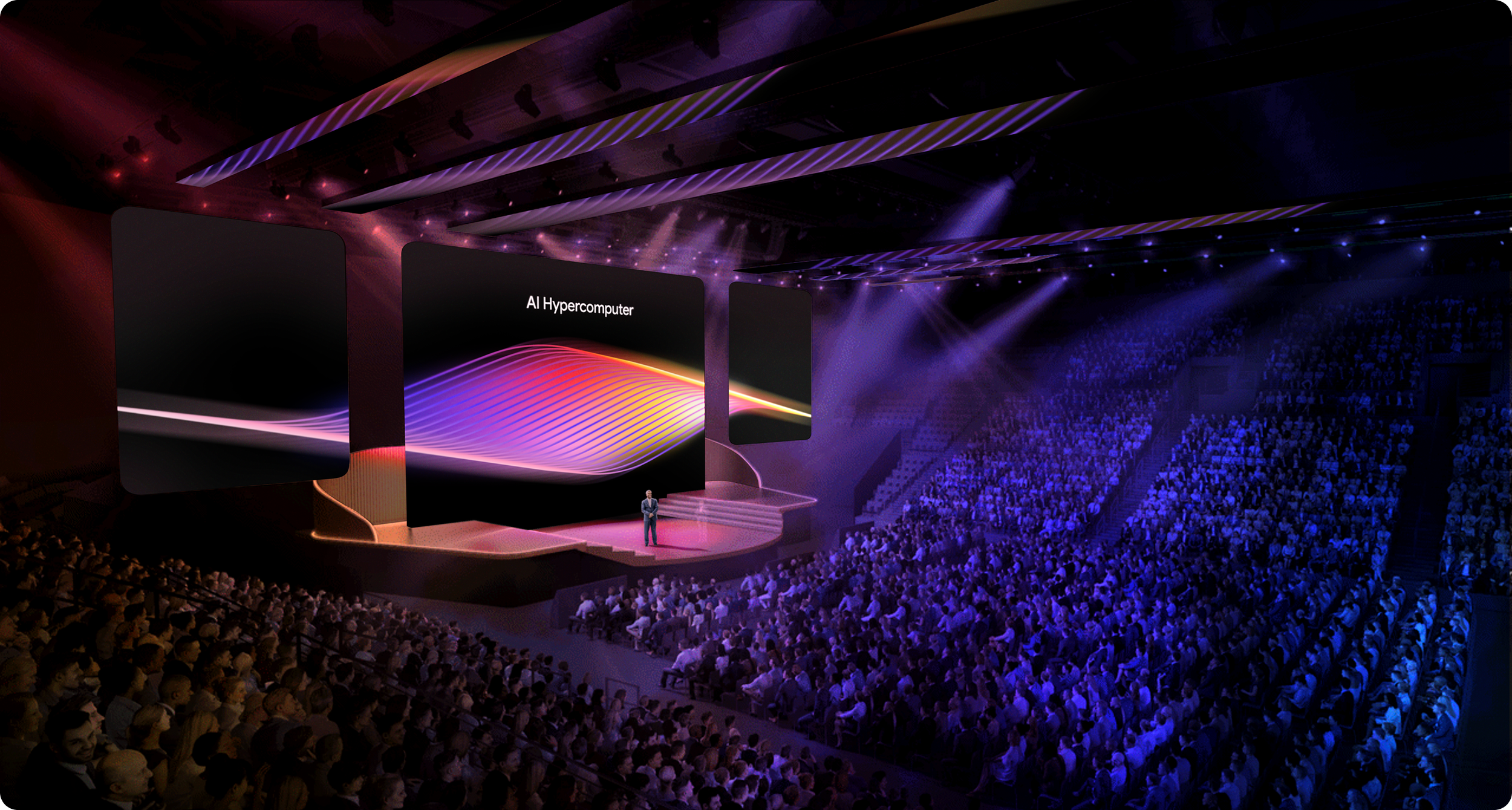 The system begins as a continuous field of compute - a visual expression of raw power before it is segmented into products or use cases. The flowing waveform communicates expansive connectivity, scale, and efficiency, reframing infrastructure from something abstract into something felt. This establishes a foundational idea: in the agentic era, compute is not a component, it is a unified system that everything else is built upon.