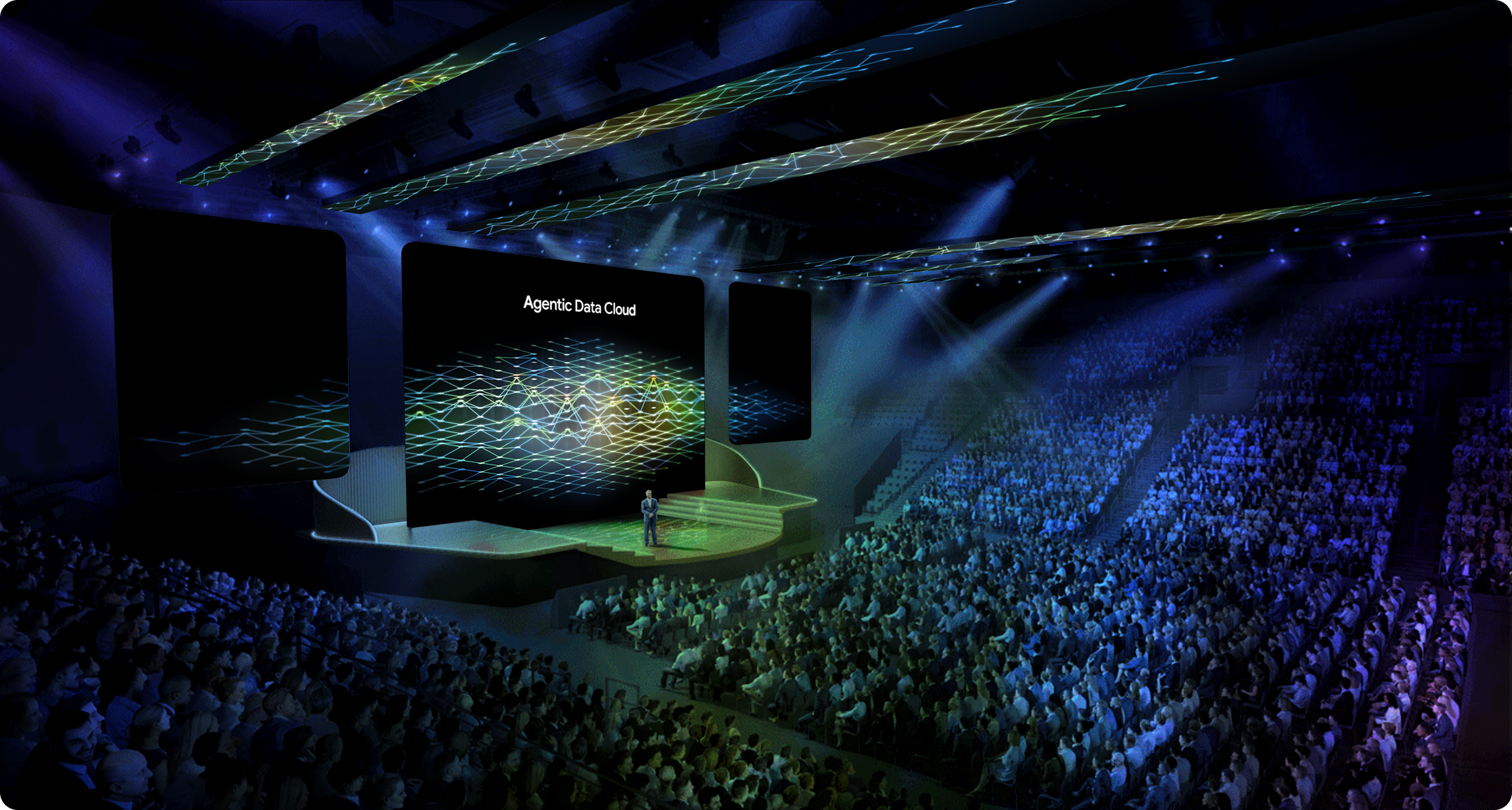 From that continuous field, structure emerges. The lattice introduces order, turning raw compute into connected context - a system that can understand relationships, not just process inputs. Visually, this shifts the narrative from power to intelligence, showing how fragmented data becomes a coherent, navigable fabric that agents can reason over with confidence.